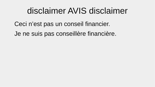 Je ne suis pas conseillère financière et cette présentation n'est pas un conseil financier.