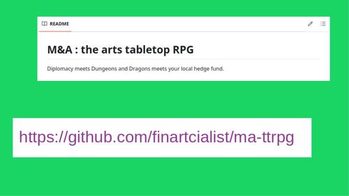 Mergers & Acquisitions - un jeu de rôle injouable avec de drôles de règles dont l'objectif est de permettre à un petit groupe de vivre les tensions reliées aux négociations commerciales.