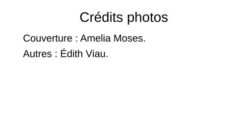 Merci à Amelia Moses pour la photo de la page couverture de cette présentation. Les autres photographies sont de moi.